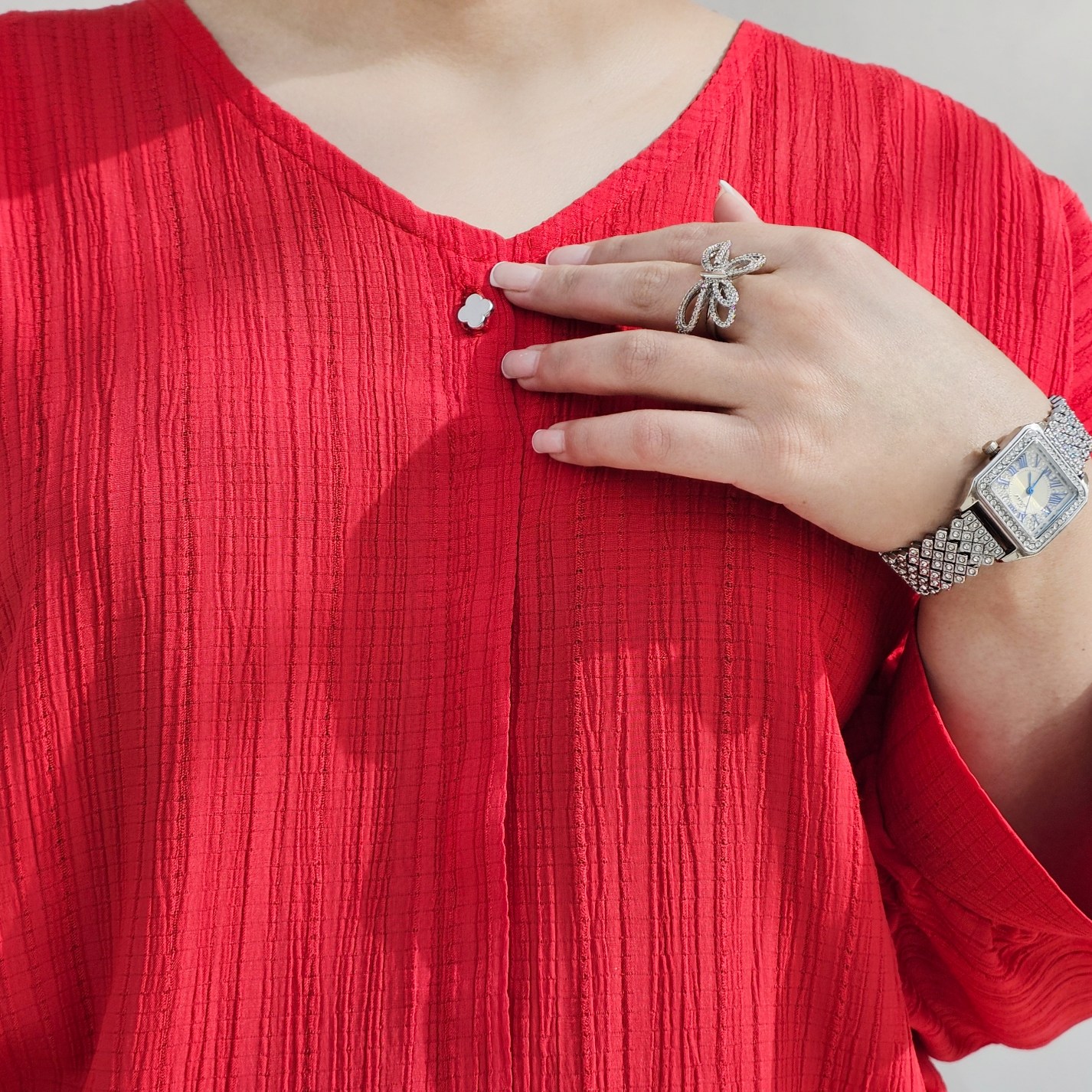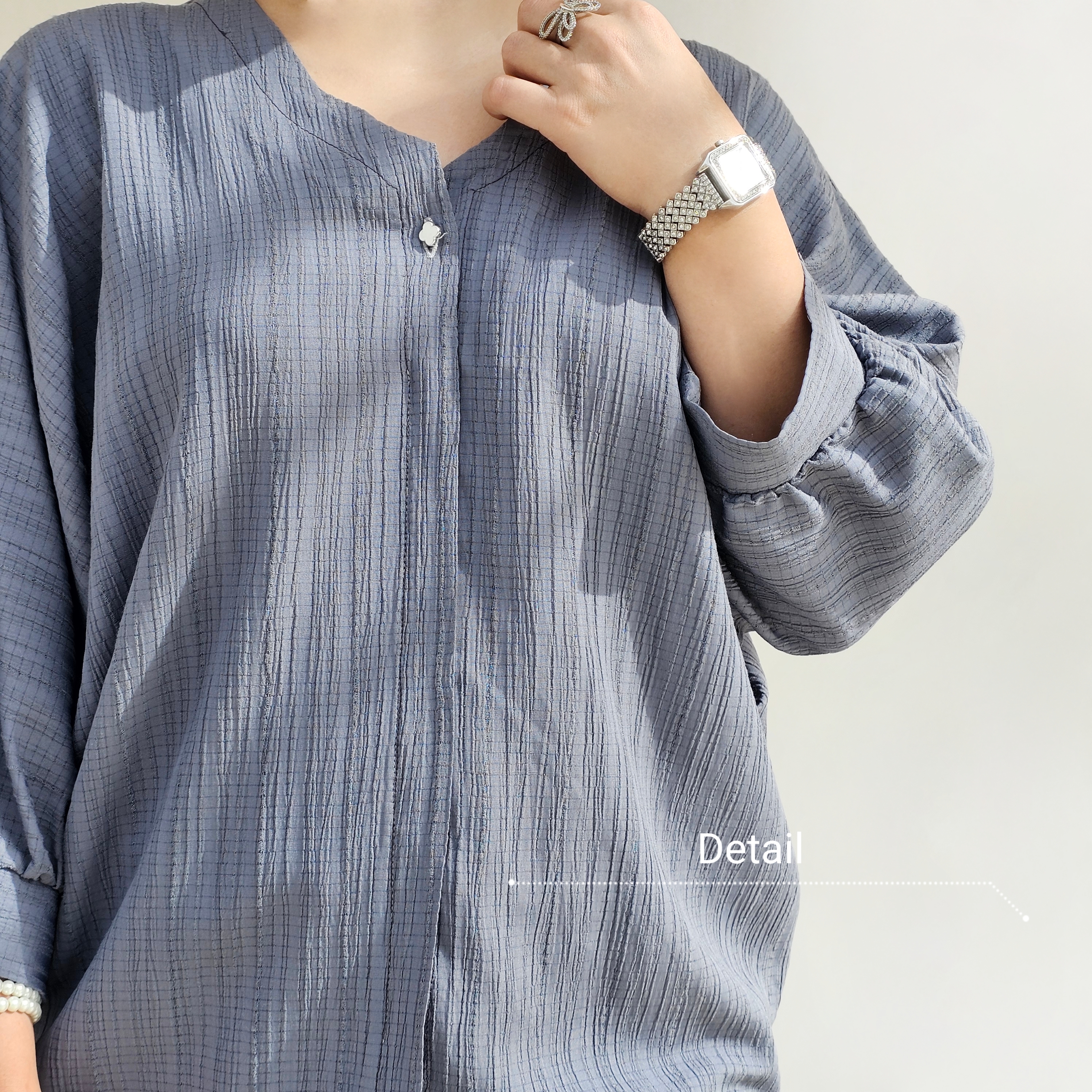 جنسش کریشست که یه پارچه سبک و نرمه و اینقدر راحت و خنکه که تو تن احساس نمیکنی مدلش کیمونو هست واسه هر نوع استایل بدنی مناسبه🪄 جلو کار بسته هست یه قد مناسب داره که میتونی تو هرجمعی راحت استفاده کنی🎨