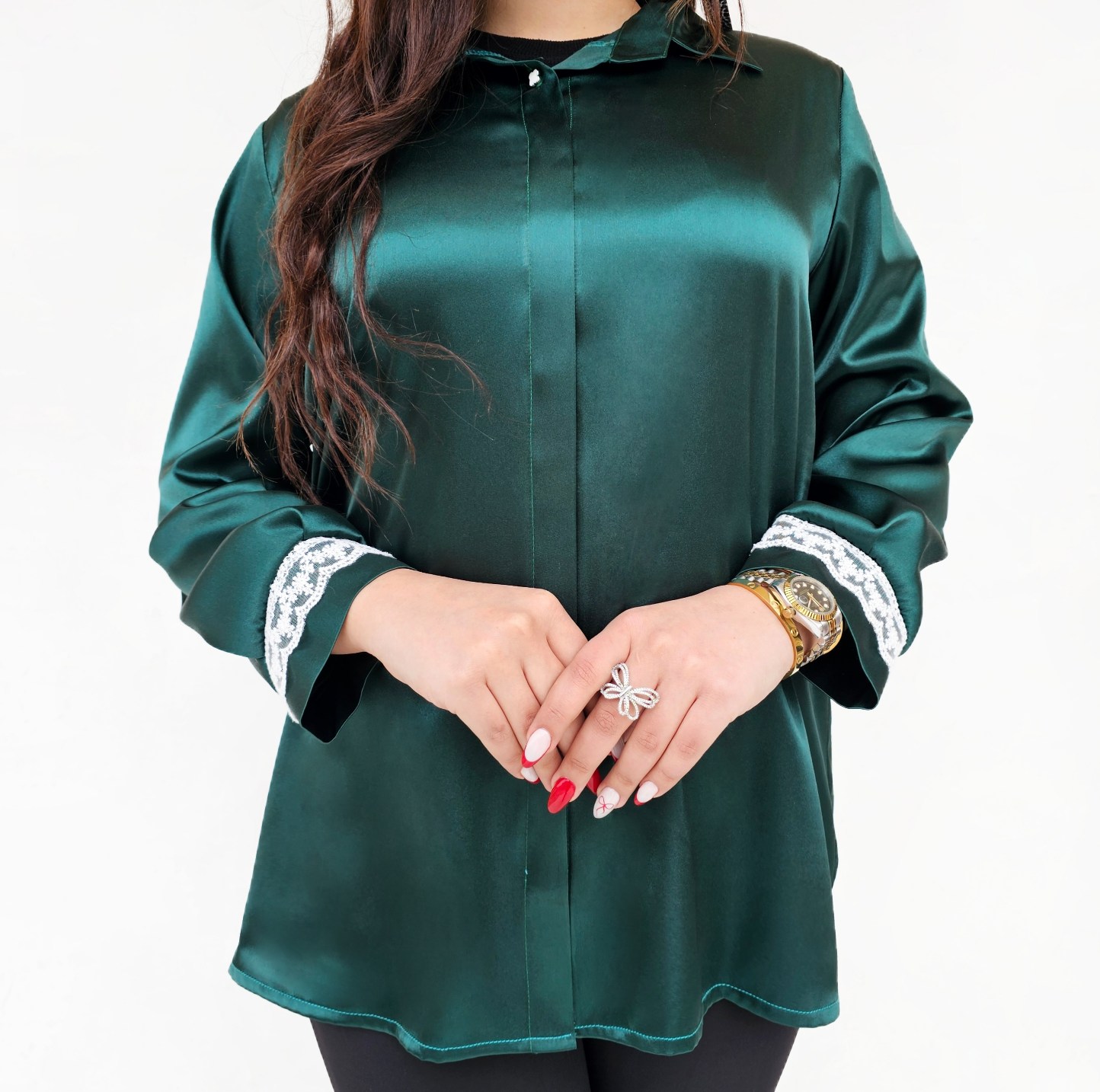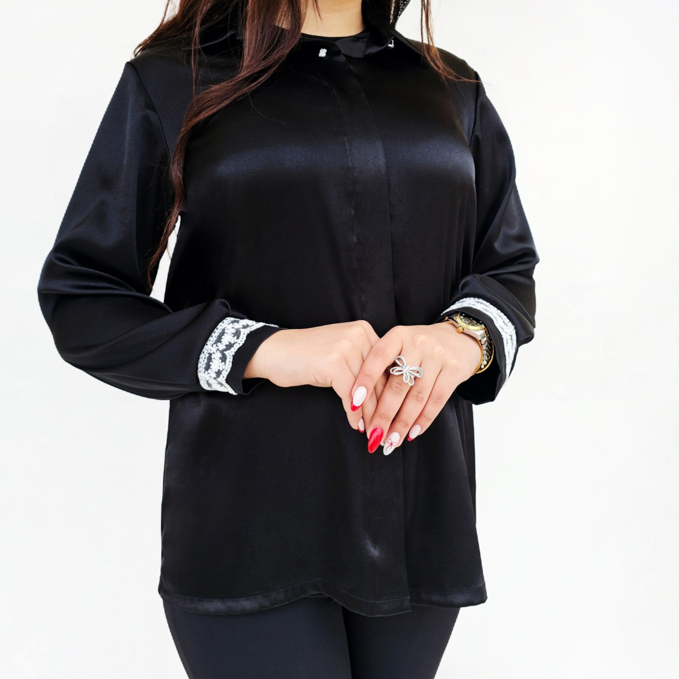 شومیز جلو بسته تک دکمه بالا باز میشود