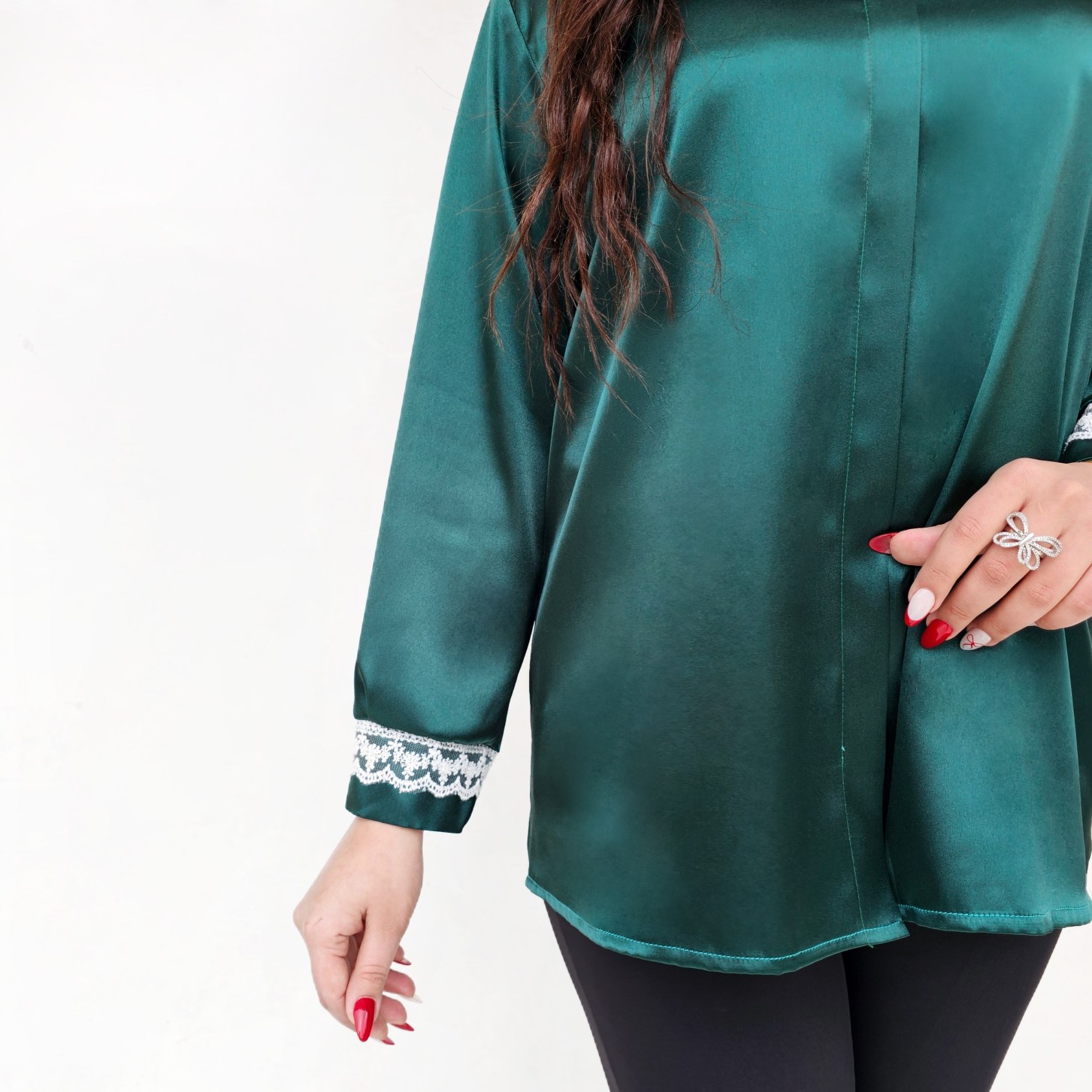 جنسش از ساتن ترک با کیفیت و لطیف که لکه نمیشه پرز نمیده و دوخت تمیز و بینظیر داره و مناسب دورهمی و مهمانی خاص🪡